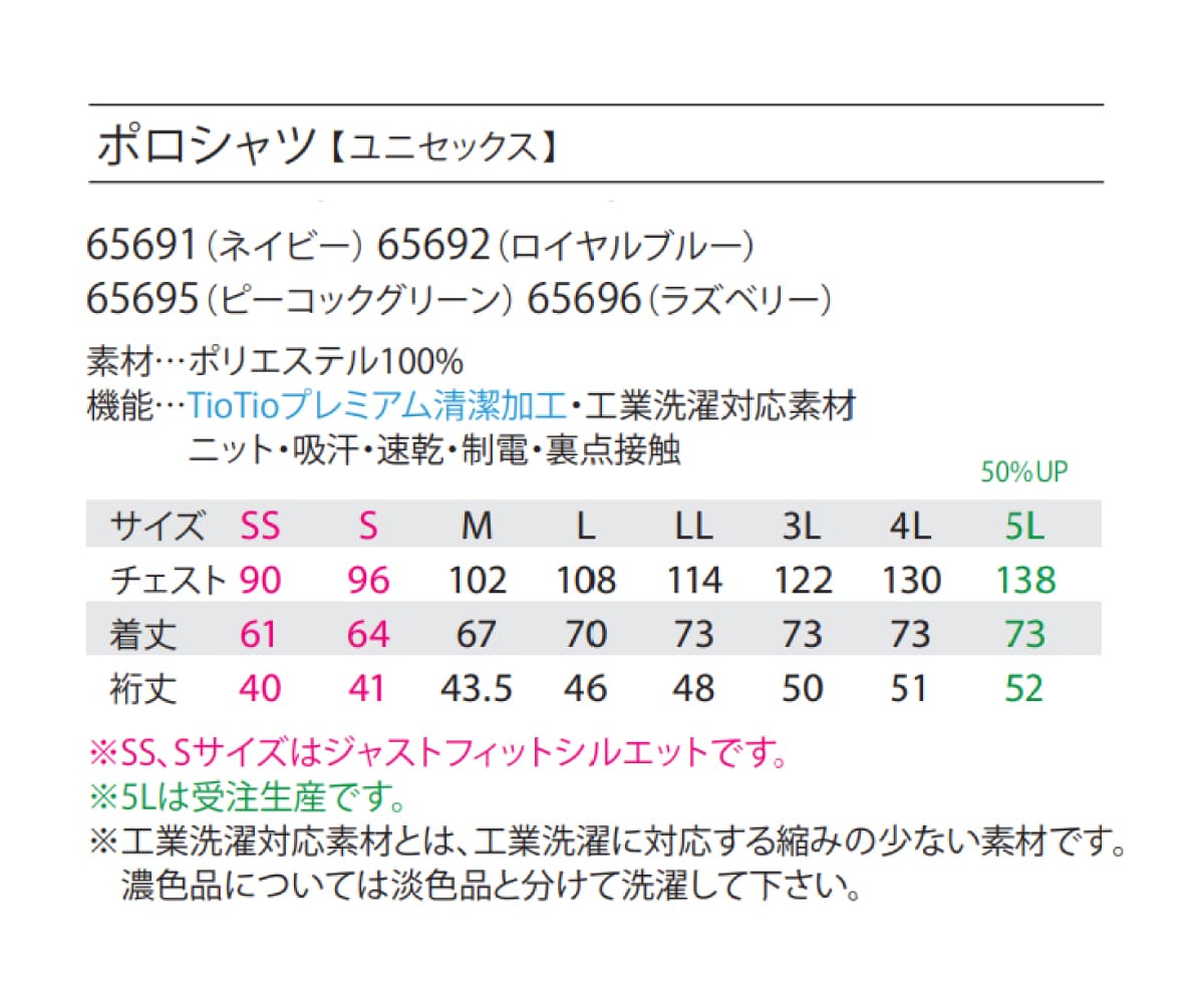 65695 男女兼用ポロシャツ ピーコックグリーン