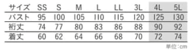 | サイズ | SS,S,M,L,LL,3L,4L,5L |