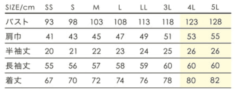 | サイズ | SS,S,M,L,LL,3L,4L,5L |