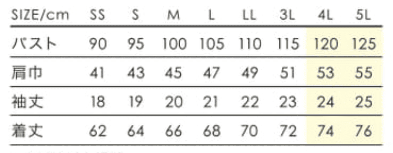 | サイズ | SS,S,M,L,LL,3L,4L,5L |