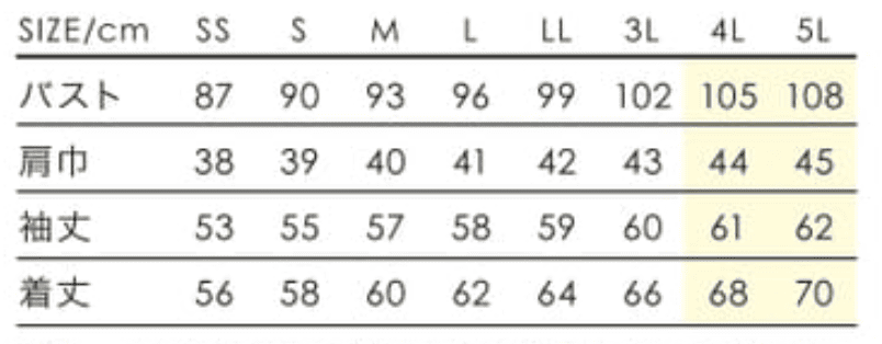 | サイズ | SS,S,M,L,LL,3L,4L,5L |
