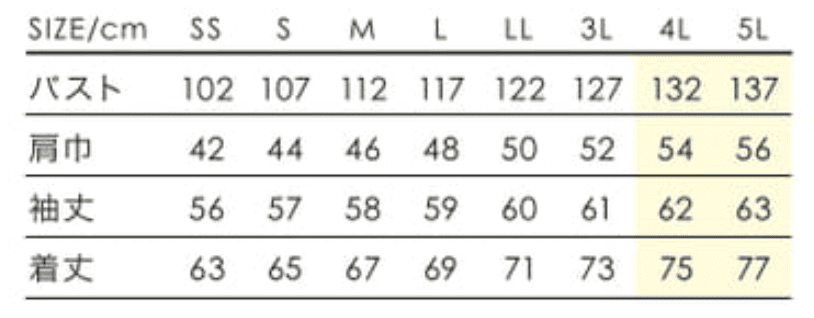 | サイズ | SS,S,M,L,LL,3L,4L,5L |