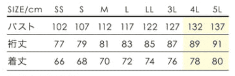 | サイズ | SS,S,M,L,LL,3L,4L,5L |
