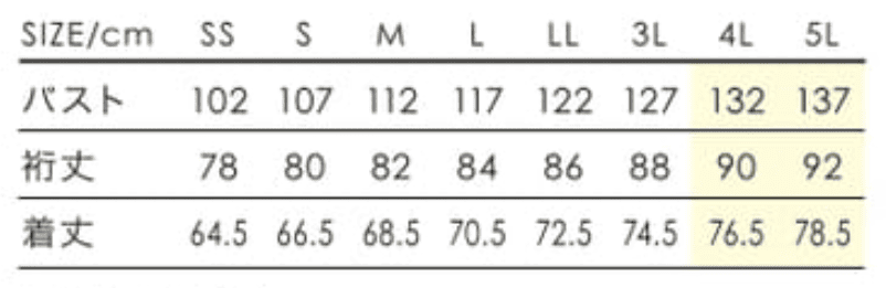 | サイズ | SS,S,M,L,LL,3L,4L,5L |