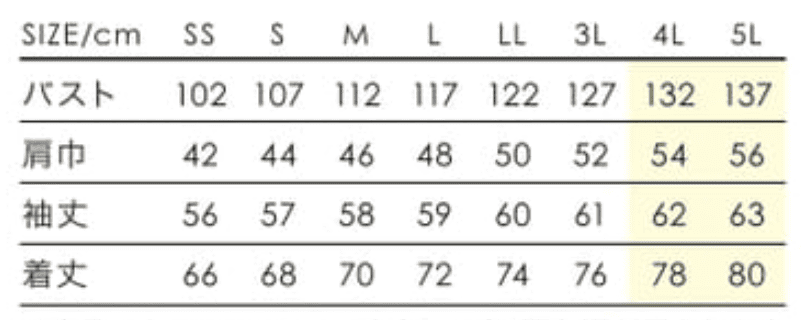 | サイズ | SS,S,M,L,LL,3L,4L,5L |