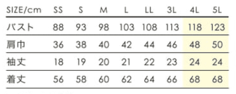 | サイズ | SS,S,M,L,LL,3L,4L,5L |