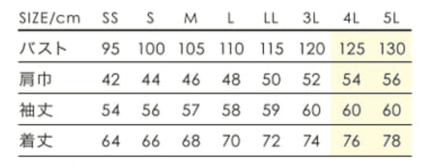 | サイズ | SS,S,M,L,LL,3L,4L,5L |