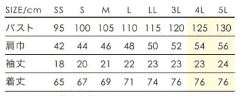 | サイズ | SS,S,M,L,LL,3L,4L,5L |