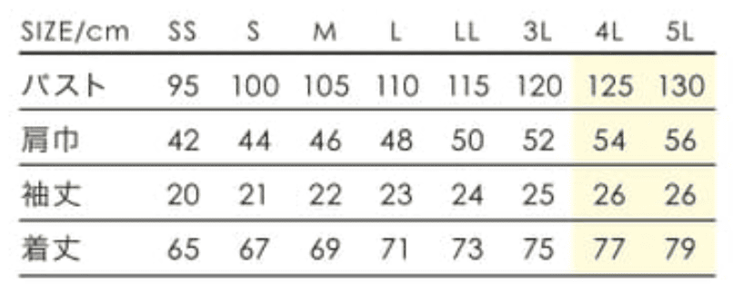 | サイズ | SS,S,M,L,LL,3L,4L,5L |