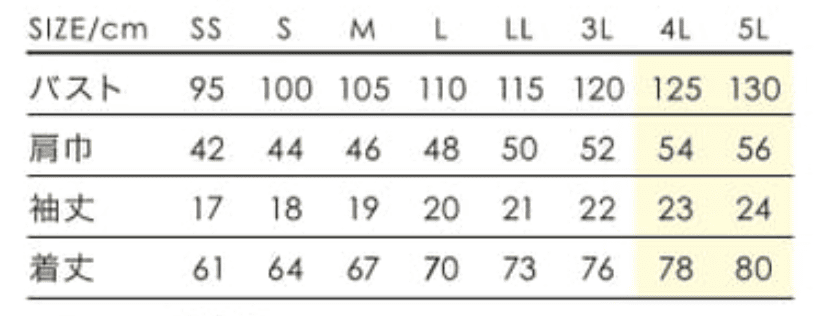 | サイズ | SS,S,M,L,LL,3L,4L,5L |