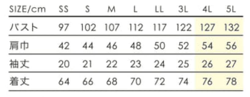 | サイズ | SS,S,M,L,LL,3L,4L,5L |