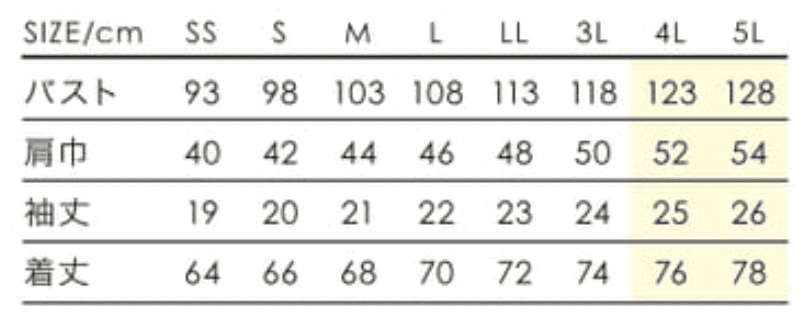 | サイズ | SS,S,M,L,LL,3L,4L,5L |
