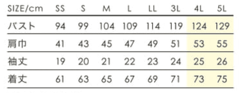 | サイズ | SS,S,M,L,LL,3L,4L,5L |