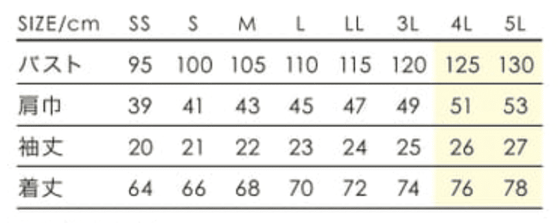 | サイズ | SS,S,M,L,LL,3L,4L,5L |