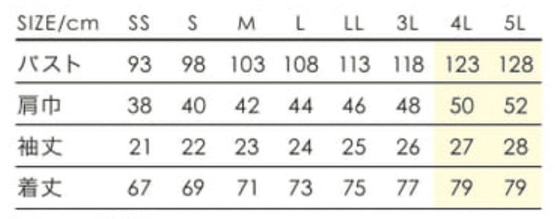 | サイズ | SS,S,M,L,LL,3L,4L,5L |