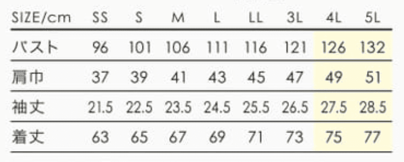 | サイズ | SS,S,M,L,LL,3L,4L,5L |
