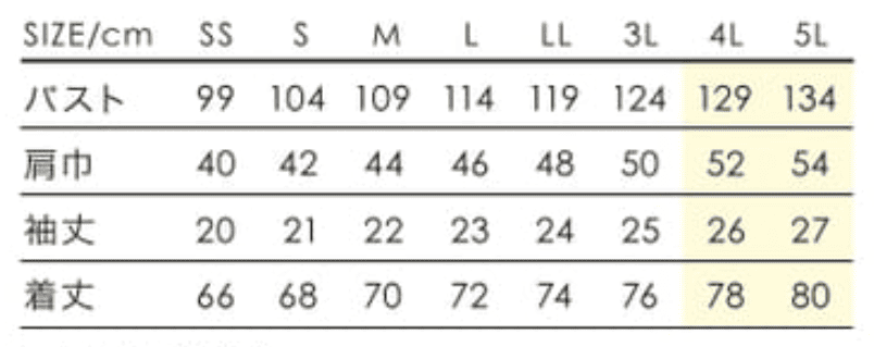 | サイズ | SS,S,M,L,LL,3L,4L,5L |