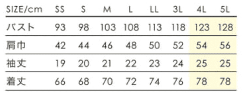 | サイズ | SS,S,M,L,LL,3L,4L,5L |