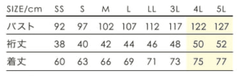 | サイズ | SS,S,M,L,LL,3L,4L,5L |