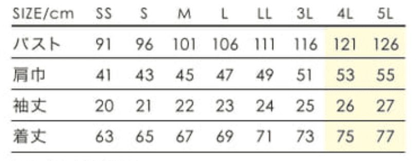 | サイズ | SS,S,M,L,LL,3L,4L,5L |