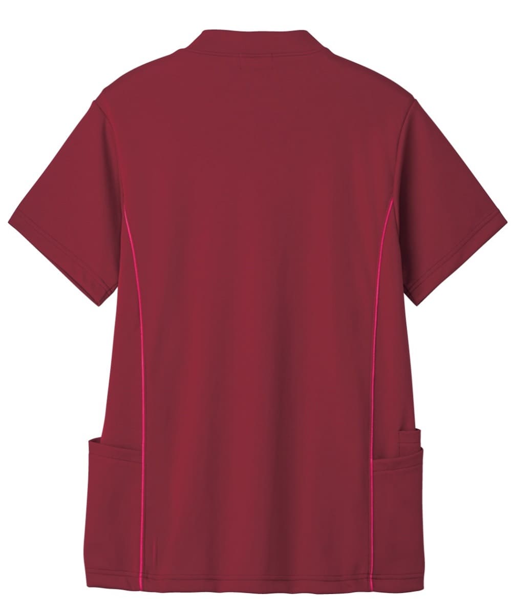 73-2278 スクラブ レディス半袖 白/バーガンディ