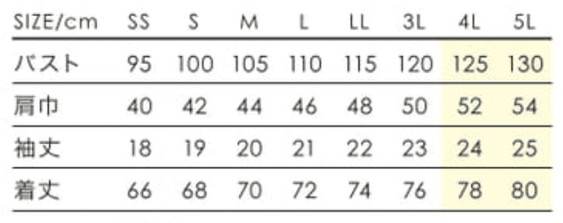 | サイズ | SS,S,M,L,LL,3L,4L,5L |