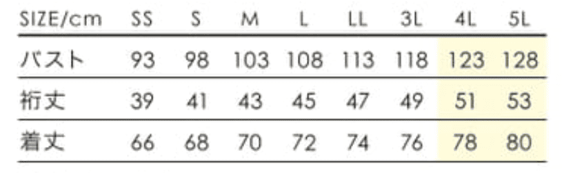 | サイズ | SS,S,M,L,LL,3L,4L,5L |