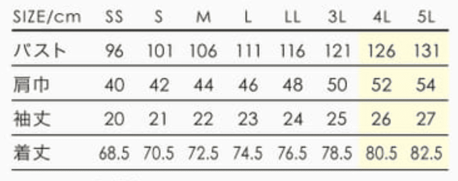 | サイズ | SS,S,M,L,LL,3L,4L,5L |