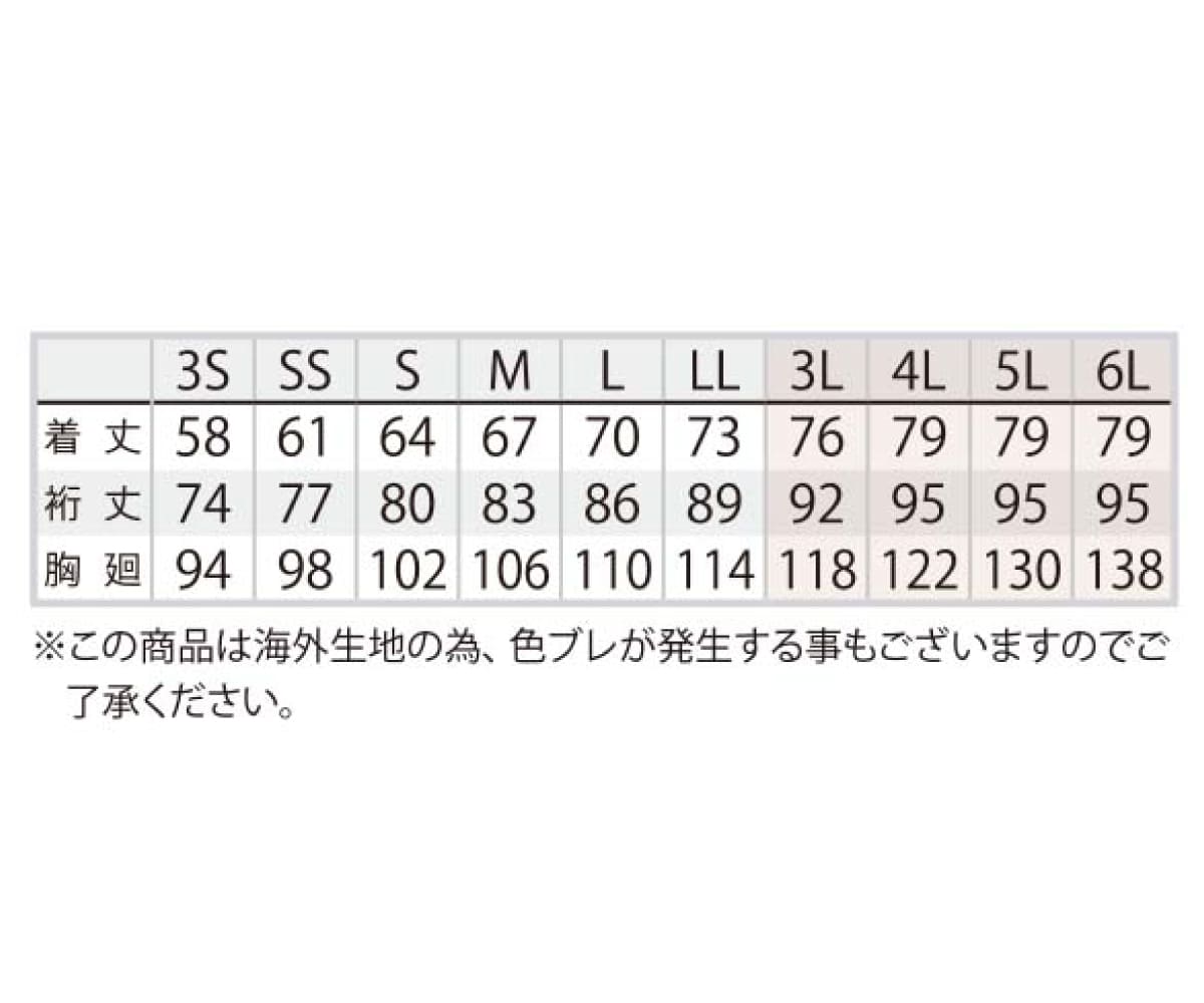 | サイズ | 3S,SS,S,M,L,LL,3L,4L,5L,6L |