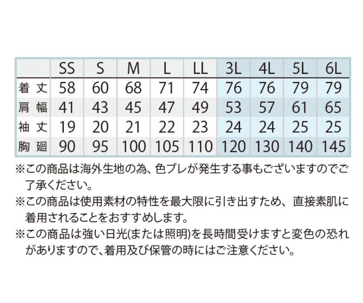 | サイズ | SS,S,M,L,LL,3L,4L,5L,6L |