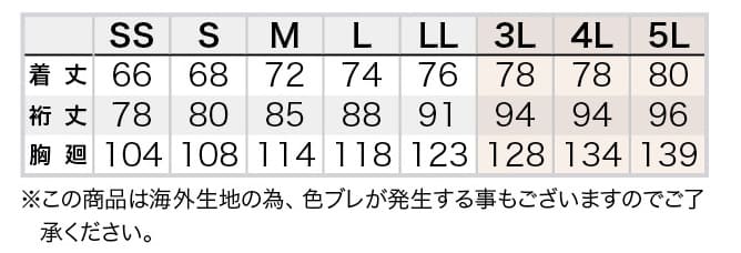 | サイズ | SS,S,M,L,LL,3L,4L,5L |