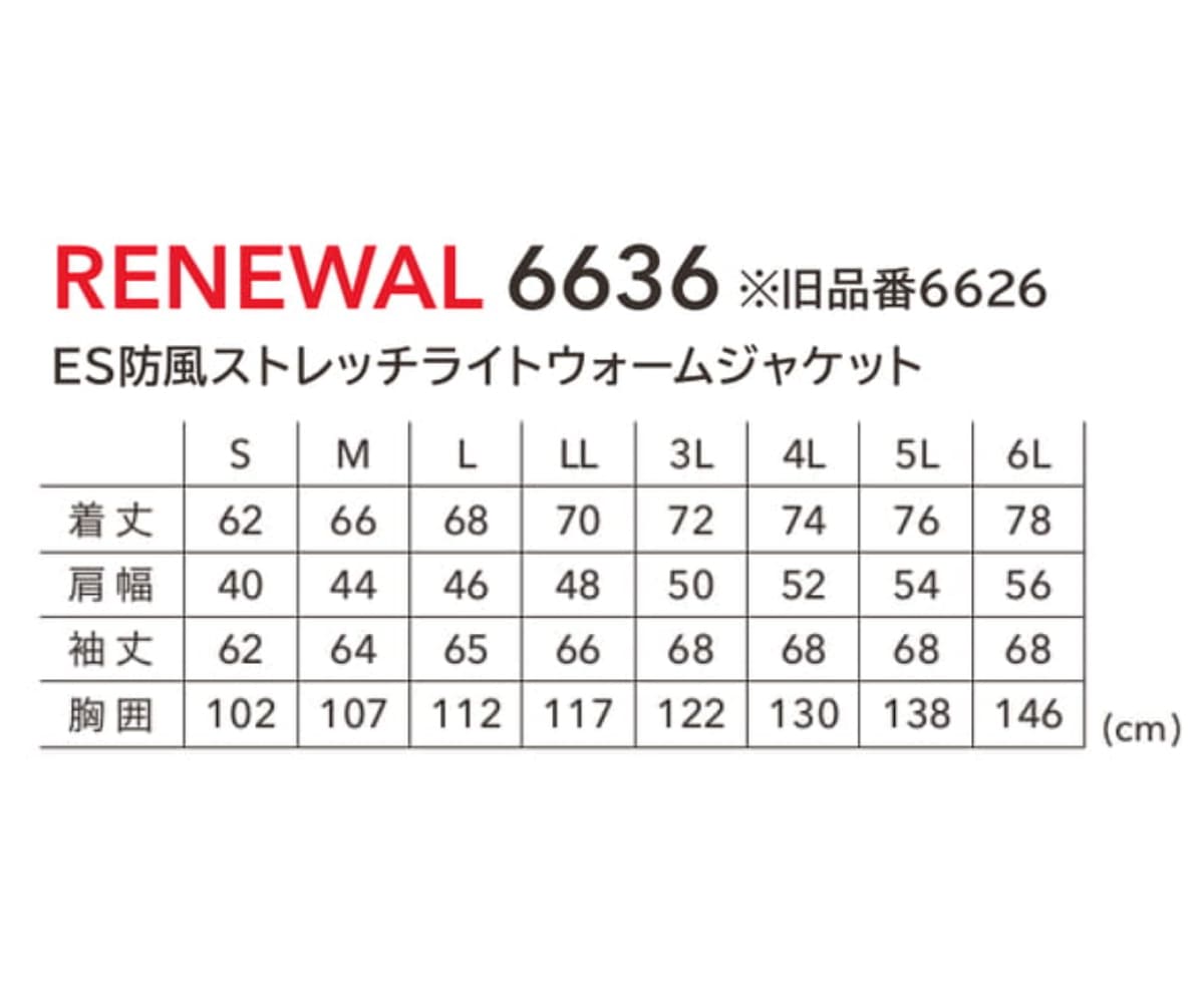 6636-95 防風ストレッチライトウォームジャケット ブラック