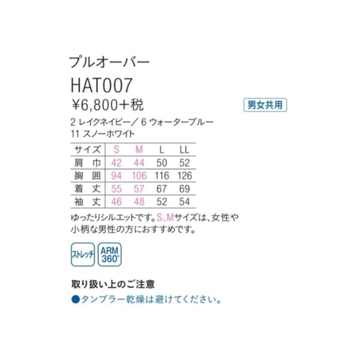 HAT007-2 男女兼用プルオーバー レイクネイビー