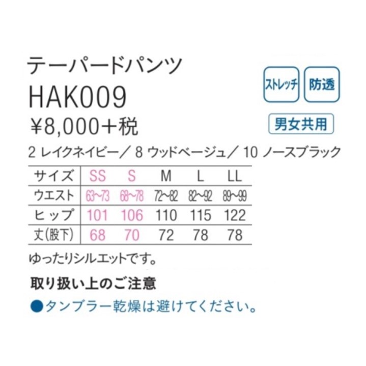 HAK009-8 男女兼用テーパードパンツ ウッドベージュ