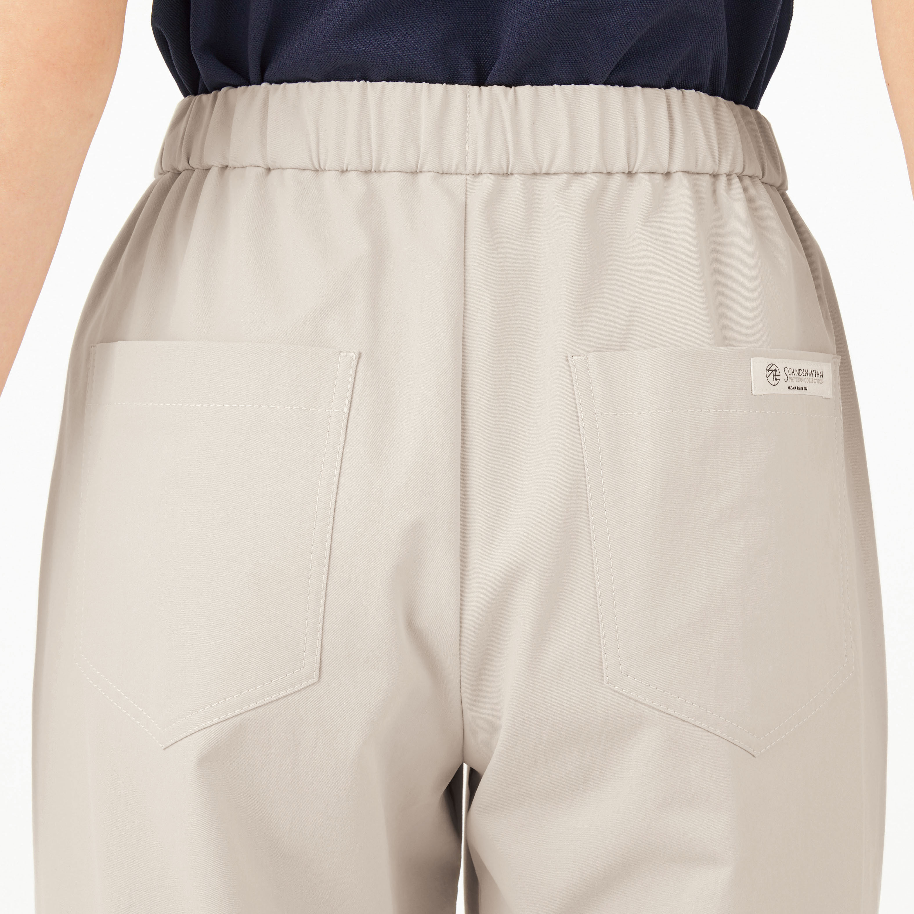 腰回りはゆったり、足首は細めに絞ってもたつかないテーパードパンツ。
