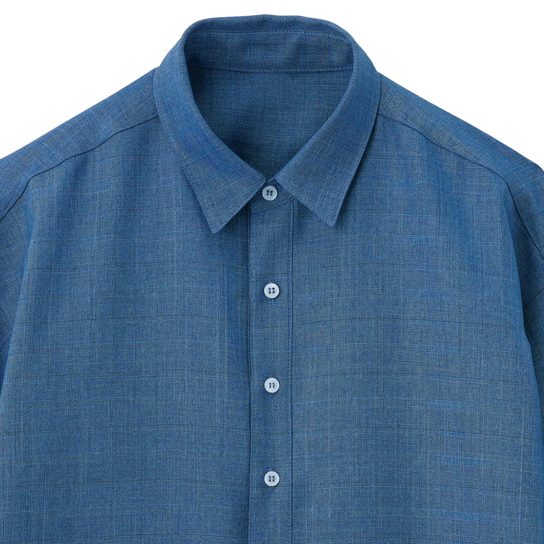 柔らかでシワになりにくく、清潔感やきちんとした印象を与える、ゆったりシルエットのダンガリーシャツ。