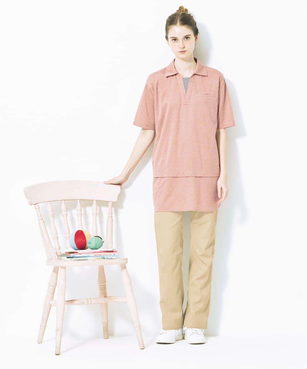 ゆったりシルエットのスキッパータイプのロングポロシャツ。