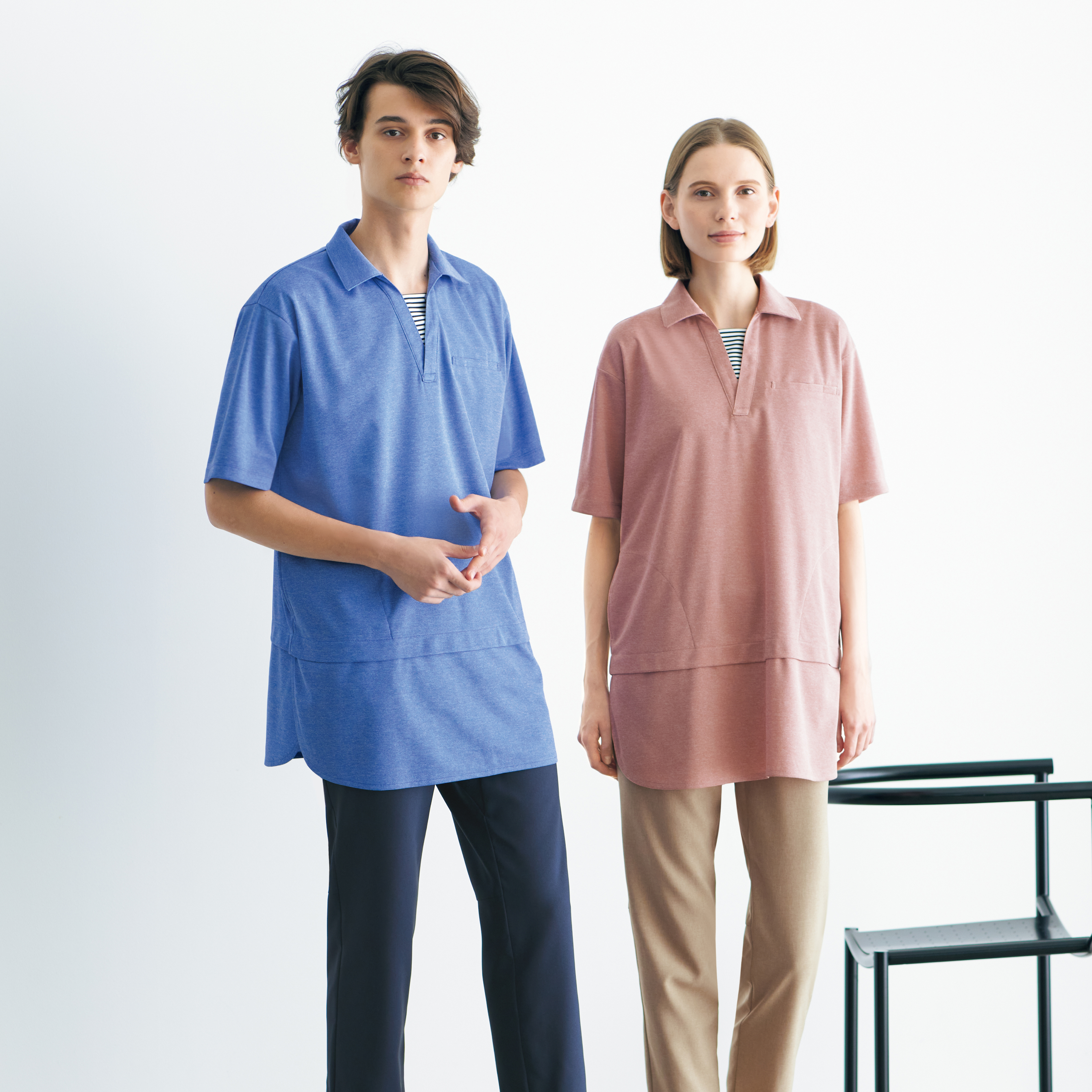 HSP018-9 男女兼用半袖ロングポロシャツ サンセットピンク