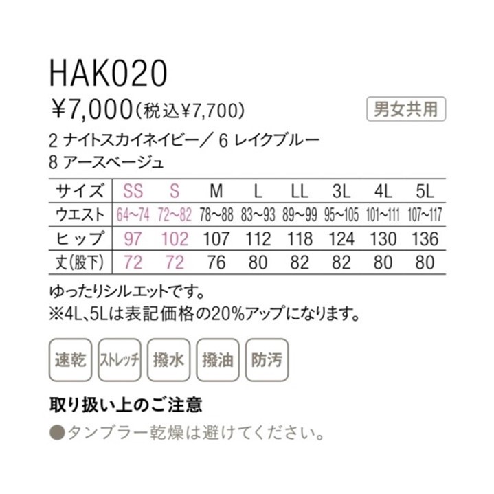HAK020-2 男女兼用テーパードパンツ ナイトスカイネイビー