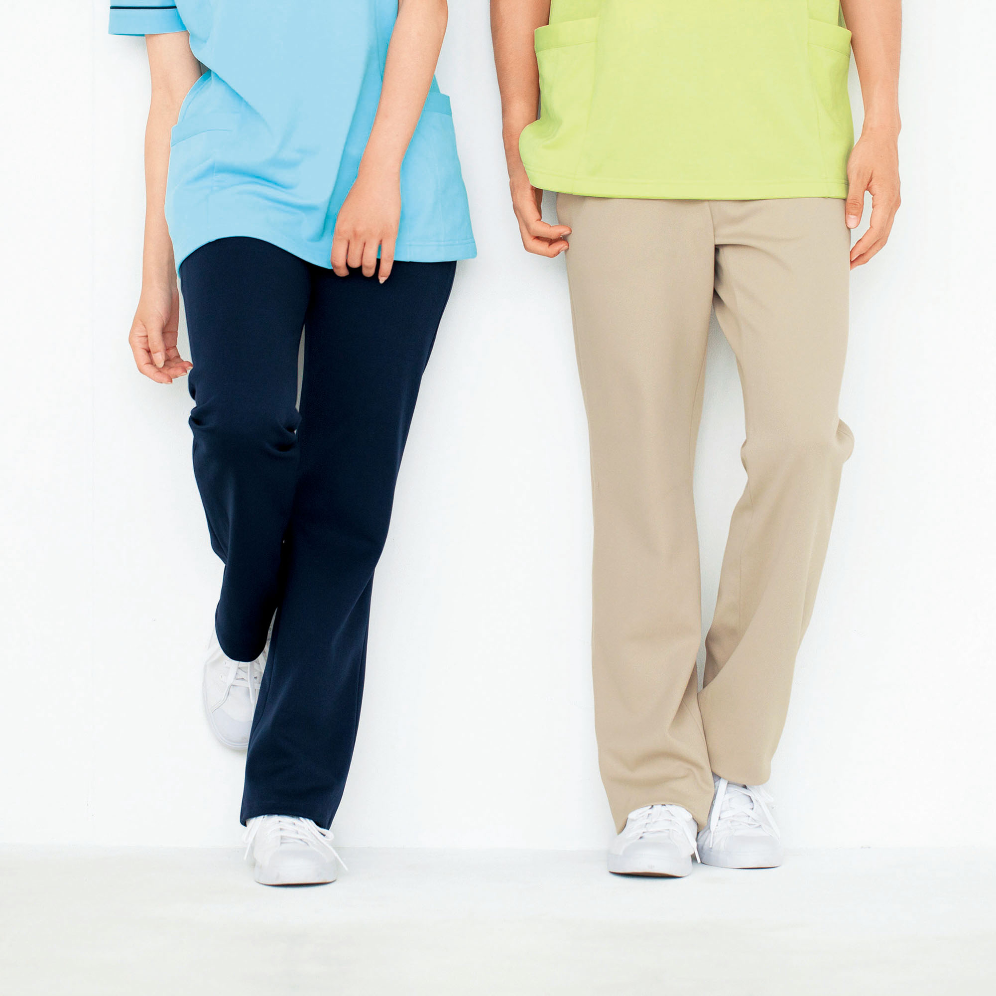 介助のあらゆる動きにフィットする、ソフトな肌触りのレディスニットブーツカットパンツ。