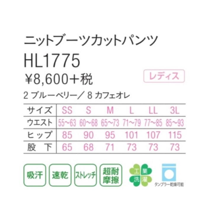 HL1775-2 レディスニットブーツカットパンツ ブルーベリー