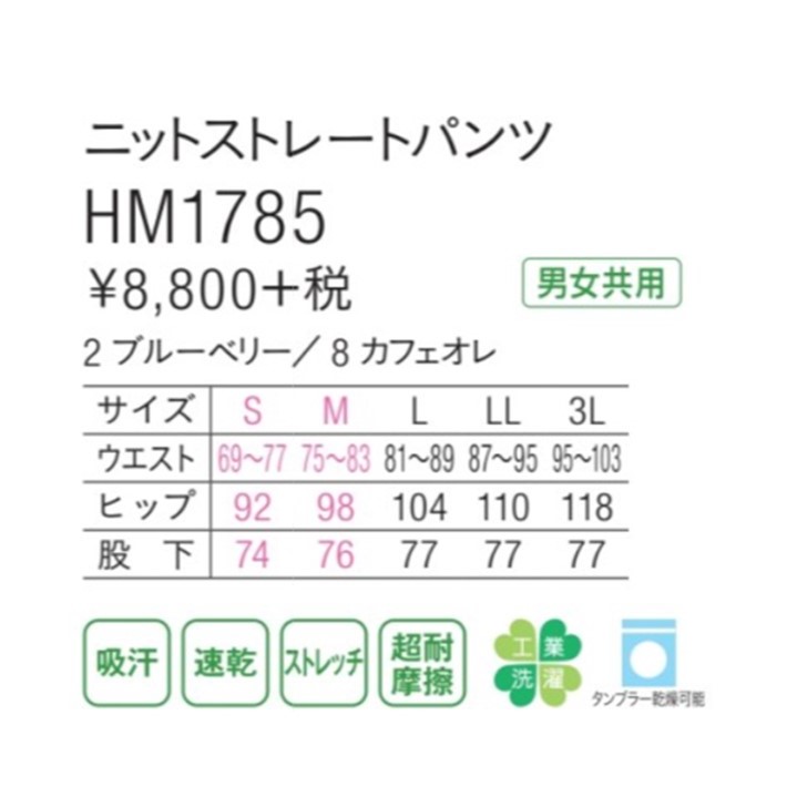 HM1785-8 男女兼用ニットストレートパンツ カフェオレ