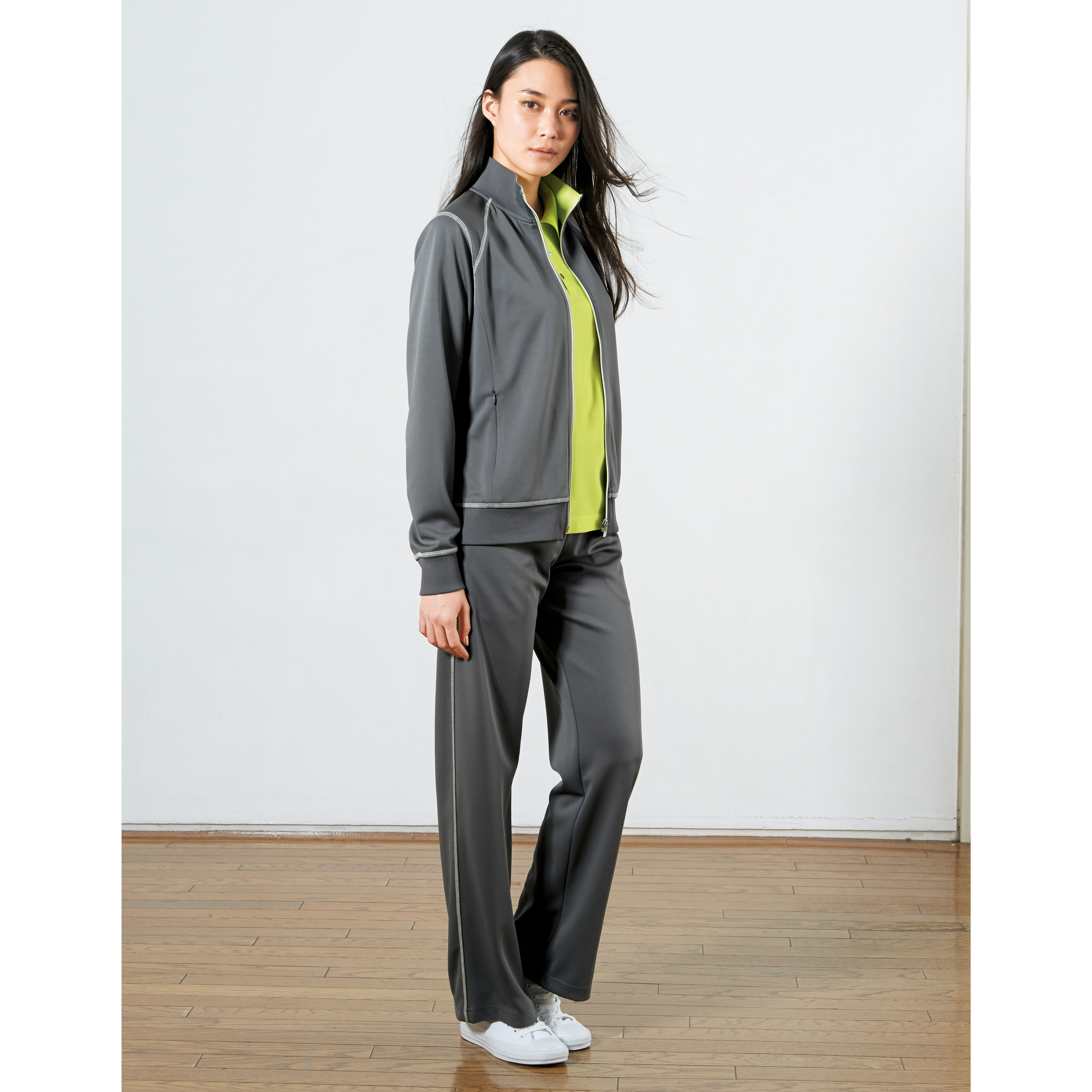 HM1811-5 男女兼用ニットジップアップブルゾン ミネラルグレー