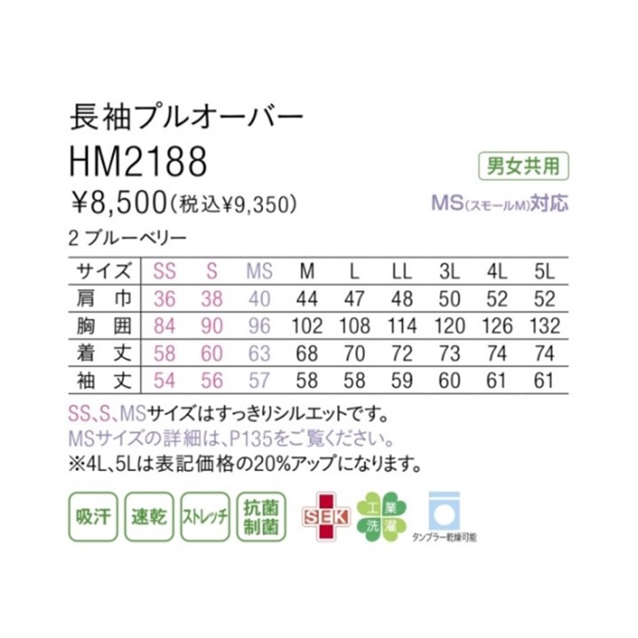 HM2188-2 男女兼用長袖プルオーバー ブルーベリー