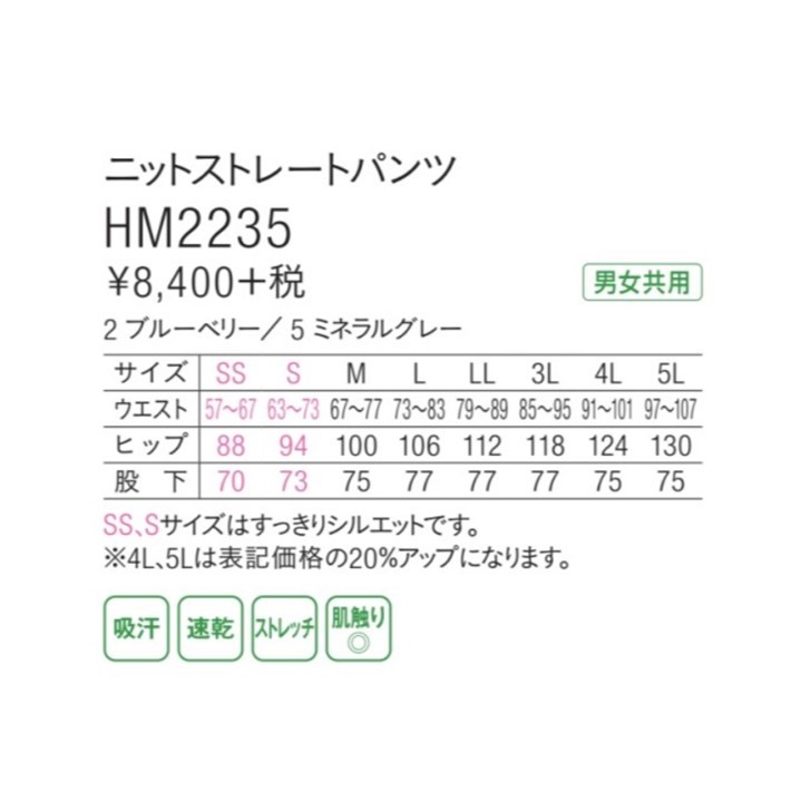 HM2235-2 男女兼用ニットストレートパンツ ブルーベリー