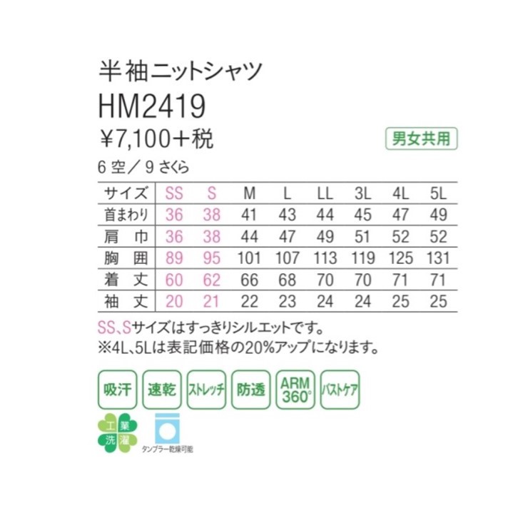 HM2419-9 男女兼用半袖ニットシャツ さくら