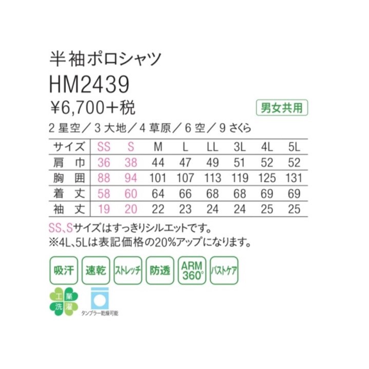 | サイズ | SS,S,M,L,LL,3L,4L,5L |