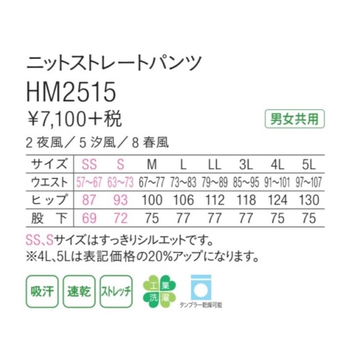 HM2515-2 男女兼用ニットストレートパンツ 夜風