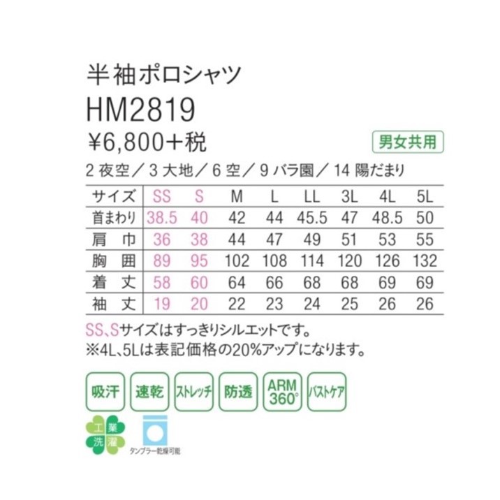 | サイズ | SS,S,M,L,LL,3L,4L,5L |